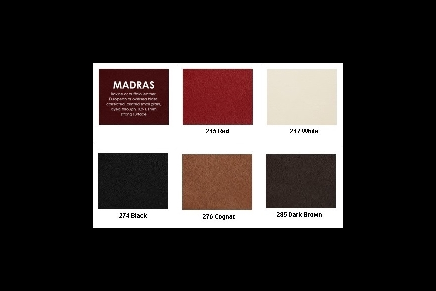 Madraslæder er en gennemfarvet standard okse læder, som kommer på alle slidflader.
