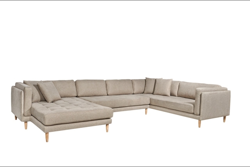 F) Open end sofa, varierer i mål fra 234 cm til 284 cm i bredden x 220 cm