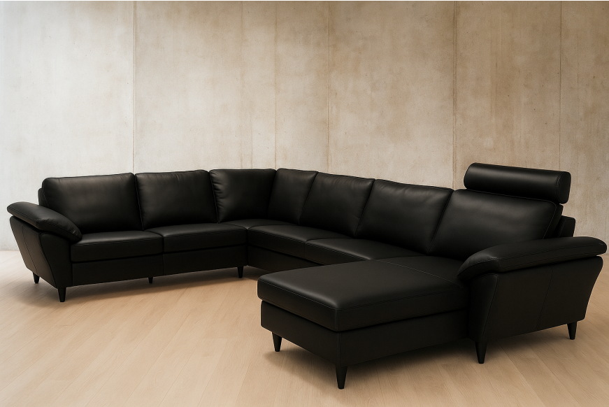 Klassisk hjørnesofa m. chaiselong. Med kortere sædedybde.