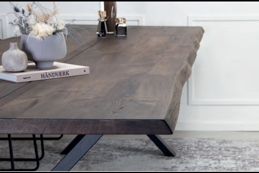 Flot og hyggeligt planke spisebord fra House of Sander. Her vist med kraftige X-ben, men fås også med skråben..