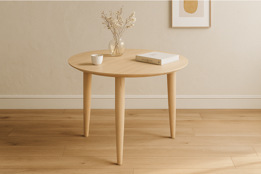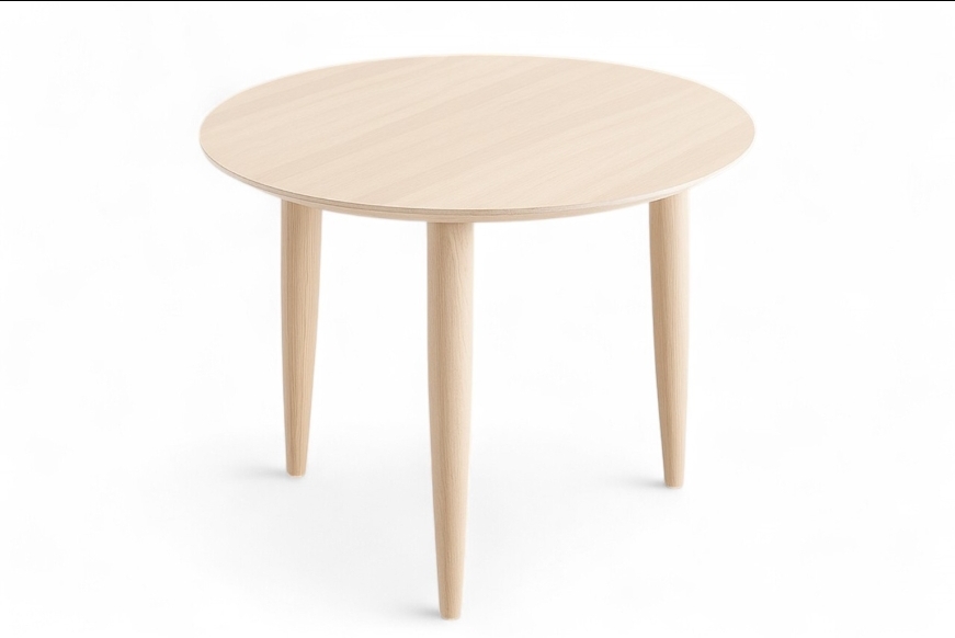 Design dit eget sofabord. Rundt sofabord. Hvidolieret egefiner.