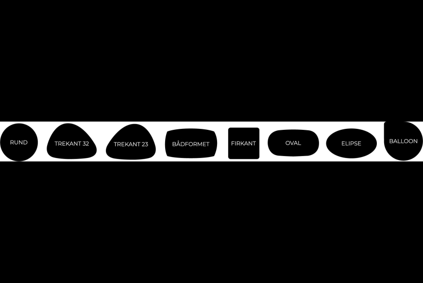 Bordet har 3 ben, hvis Ø er under 80, og 4 ben hvis Ø er 80 eller over.