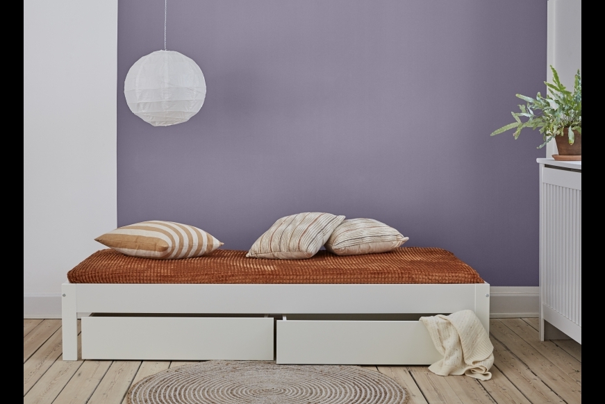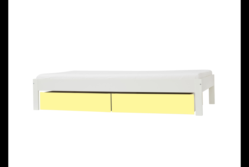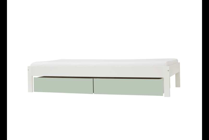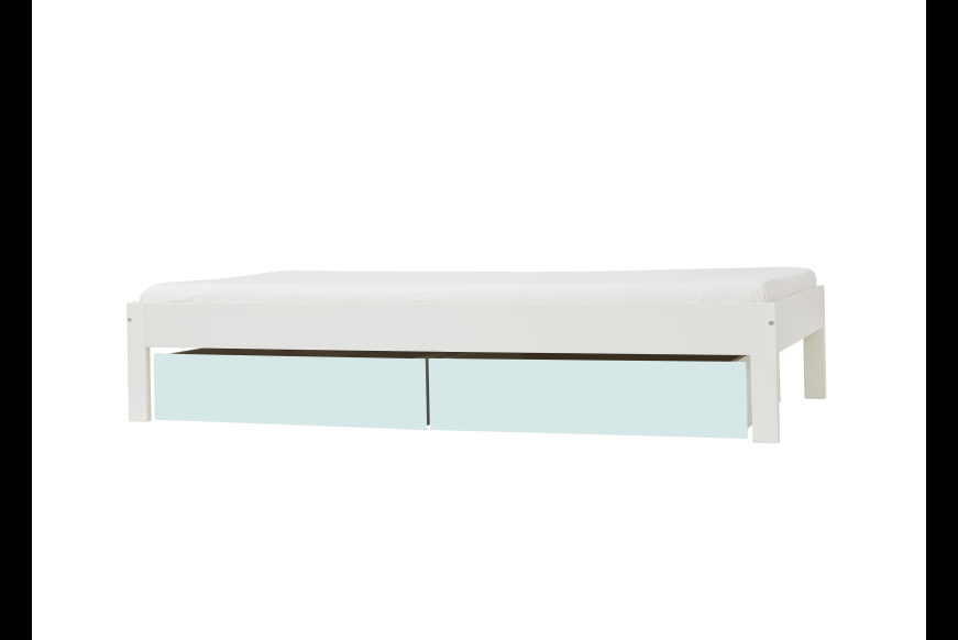 Bemærk: sengen vil altid komme i hvid, det vil dog være muligt, at vælge skuffer i 4 farver, eller i hvid. ( uden tillæg)