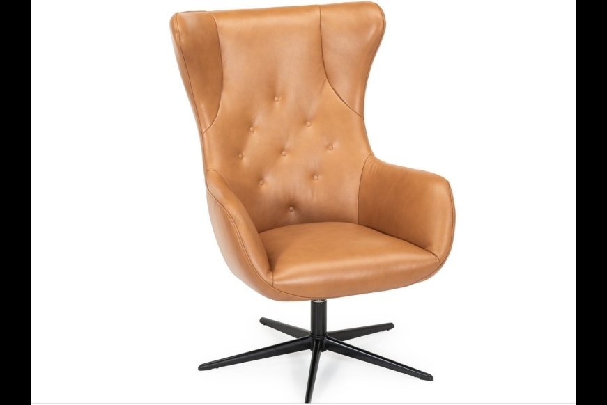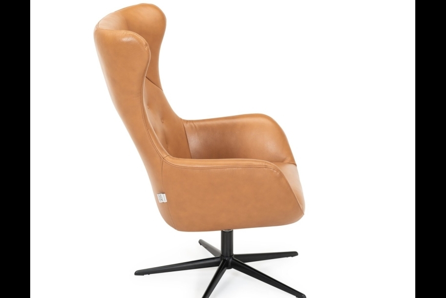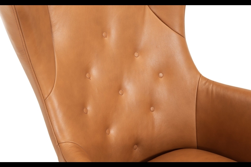 Let elegant drejestol med flot design, med flotte stikninger i ryggen. Semianilin er en blød læder, med den struktur som en læder naturligt har.