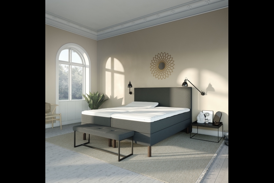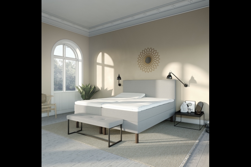 -Bunden hæves af en stærk Okin BL motor med trådløs betjening. Motoren har nat belysnings funktion, og fjernbetjeningen har en lille lommelygte, samt app funktion.