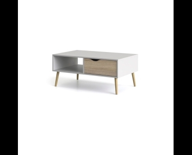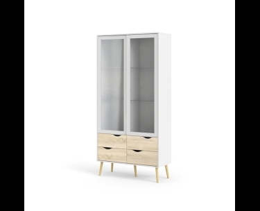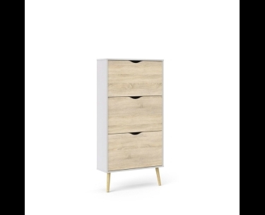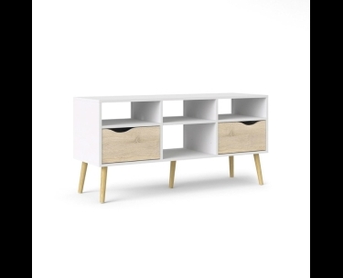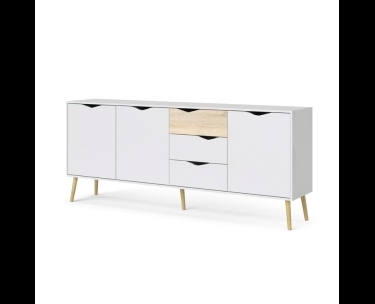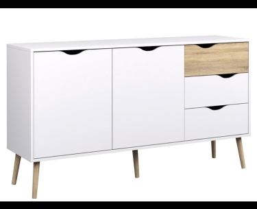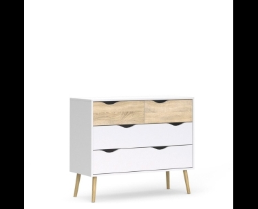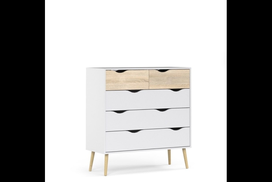 Kommode i hvid melamin med 3 store og 2 små skuffer.