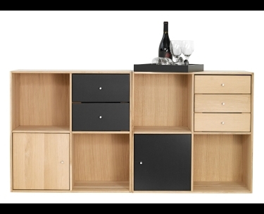Der er flere muligheder for skuffer, låger mm. Disse ting kan kombineres på et utal muligheder.