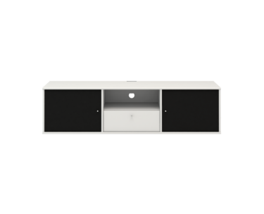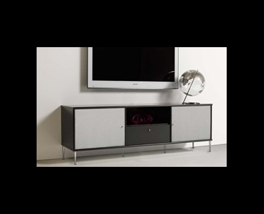 Let og elegant tv møbel med stoflåger i sort, som lyd og signal let går igennem