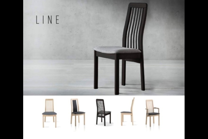 Line spisestuestolen er designet af Findahl. Den formspændte ryg giver fin støtte til ryggen, og det behagelige sæde giver god siddekomfort. Mod tilllæg, kan stolen bestilles med polsteret ryg og armlæn.